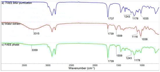 The Fourier Transform Infrared (FTIR) spectra of FAEE were determined by using the FTIR spectrophotometer Nicolet 6700 (Thermo Fisher Scientific, 5225 Verona Road Madison, Fitchburg, WI, USA). For this purpose, a zinc selenide cell was used. The FTIR spectrum was measured in the range of 600–4000 cm−1 with a resolution of 4 cm−1.