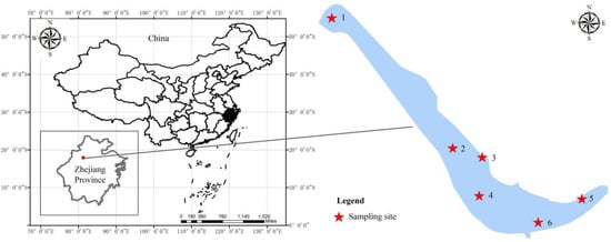 Water samples were collected from six stations (ST1~ST6) within the Waihu Reservoir. The sampling period was October 2013. Surface water samples were taken at a depth of 0.5 m below the surface, while deep water samples were taken from 0.5 m above the sediment layer. Each sample of water was taken twice. The detection parameters were determined based on the 24 indicators required for lakes (reservoirs) as specified by SEPA 2002 [36].