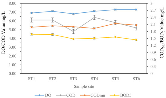 The critical parameters for evaluating the degree of water pollution and the water quality status include chemical oxygen demand (COD), biological oxygen demand (BOD5), dissolved oxygen (DO), and permanganate index (CODMn), which are closely related to water eutrophication.