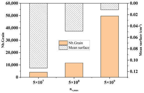 The change in the grain number and average grain area with different maximum nucleation densities.