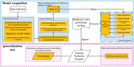 This paper is organized as follows. Section 2 describes the methodology and work of data preprocessing. Section 3 proposes a feature term selection method based on a combination of theoretical reality basis and Spearman correlation analysis. Section 4 describes the training and selection of prediction models based on a comparative evaluation of multiple computational models. Section 5 discusses the results of the model training and makes selection judgments based on the evaluation results. Section 6 describes a generalization ability assessment based on the preferred model and presents the models and engineering application methods applicable to vacuum prediction. Section 7 presents the conclusion of the paper.