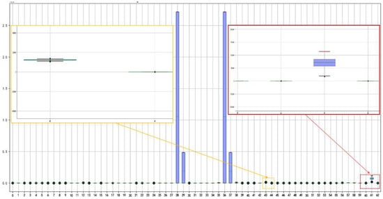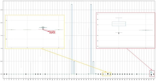 The model is usually an expression of the data structure of the overall sample, which usually captures its general properties. Some properties behave completely inconsistently with the overall sample, that is, they exist in a generation mechanism that is completely inconsistent with the overall sample. This leads to the generation of a model that does not provide a good representation of the overall sample, and thus the prediction will be inaccurate. During construction, the reliability of the sensors may cause one or more parameters to be missing from a single set of data, and such anomalies can have a significant impact on the results of the data analysis. This is why we chose not to assign values at a later stage, which would have introduced more randomness. The original data set was recorded as discrete floating-point data. We chose to convert the data into floating-point numbers and then delete the data items with null values with the help of the dropna function in the data module. The box-and-line diagram method arranges the data according to size, and then takes the median of each parameter as the core, according to the size of the values on both sides of the median in the order of the equidistributional of the limit. It then obtains the limit difference, through the introduction of coefficient terms to control the outlier cutoff point, which shows that the applicability of a variety of distributional data is good. The original data set, shown in Figure 7, is analyzed with the help of the box-and-line diagram method, and a box-and-line diagram, shown in Figure 8, is obtained. However, it can be seen that there still are some anomalies. In this paper, taking into account the existence of large data fluctuations and the inability to determine whether this represents anomalous mutation or not, the data outside the outer limit are excluded. At the same time, the upper and lower limits of the degree of stringency are appropriately reduced, in order to retain enough data for model training and testing. This leads to a small amount of features still outside the outer limit, but the impact of these data is relatively small overall, and thus they will not be excluded here.