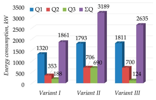 Figure 6 shows a comparison of energy consumption for individual columns and the flowsheet for the three variants considered.
