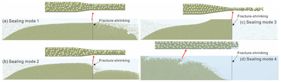After conducting the abovementioned numerical simulations, we have identified four sealing processes in the fracture-shrinking structure. The primary influencing factor is the relationship between particle size and the main and secondary fractures. By comprehending these four sealing processes and analyzing their underlying mechanisms, we thus can effectively elucidate the principle of particle sealing in fractures and determine conditions conducive to such sealings.
