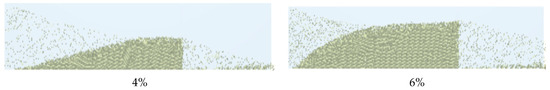 The influence analysis of particle size parameters is conducted based on the parameter settings provided in Table 4. Herein, we maintain a consistent fracture size while varying the particle concentration within the range of 4% to 6%, ensuring that the particle size remains constant.