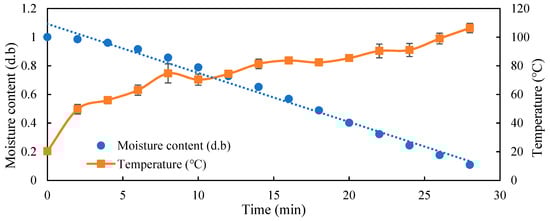 Then, the loading mixtures were dried by HARF with a suitable gap to produce a final moisture content below 10%. During the drying process, the weight and temperature of the samples were measured, and these data were utilized to construct heating and drying curves. These curves facilitated the determination of heating rate and drying kinetics.