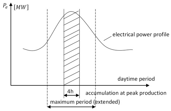 The takeover of electricity produced from renewable sources will be carried out during the period of maximum power, as shown in Figure 4. A period of accessing electric energy from renewable sources, especially solar, has been considered.