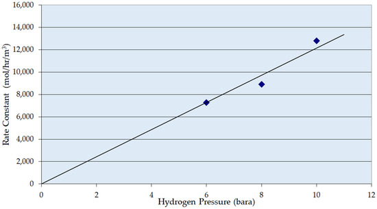 Zero-Order Apparent Rate Constant over Ni/Al2O3 as a function of hydrogen pressure. Conditions: temperature 353 K, superficial liquid velocity 10 mm s−1, G/L volumetric ratio 1:1.
