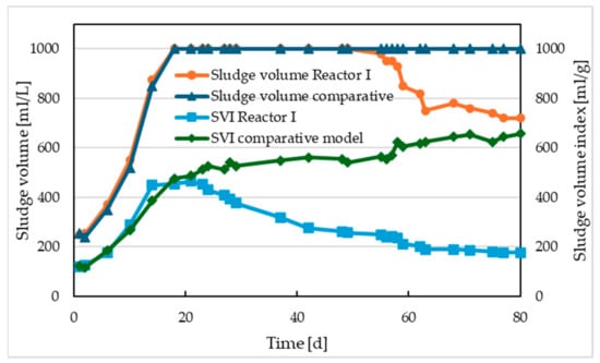 Sedimentation properties of activated sludge in Reactor I and in comparative model—sludge volume after 30 min of sedimentation and SVI.
