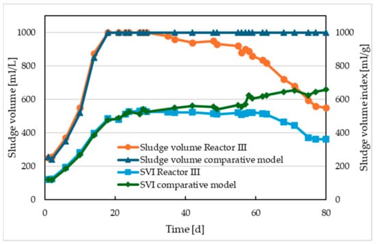 Sedimentation properties of activated sludge in Reactor III and in the comparative model—sludge volume after 30 min of sedimentation and SVI.