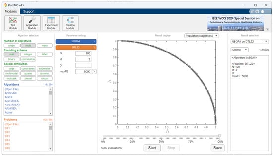 PlatEMO is developed in MATLAB, so it can be easily run by any specialist from Industrial Engineering with less programming skills on any operating system, provided that the MATLAB tool is installed. It consists of a GUI (Figure 3) which allows users to configure and run different simulations. The results are also displayed in a convenient visual way, as shown in Figure 3.