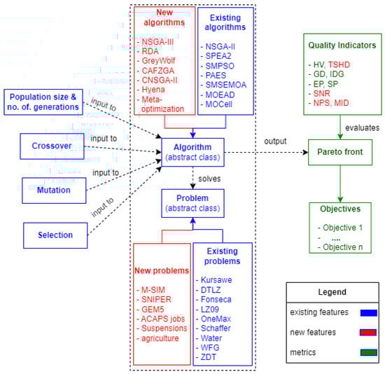 - Liefooghe, A.; Basseur, M.; Jourdan, L.; Talbi, E.-G. ParadisEO-MOEO: A framework for evolutionary multi-objective optimization. In Proceedings of the International Conference on Evolutionary Multi-Criterion Optimization, Matsushima, Japan, 5–8 March 2007; pp. 386–400. [Google Scholar]