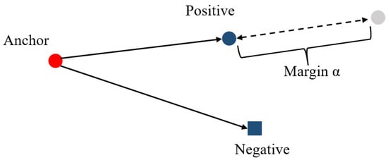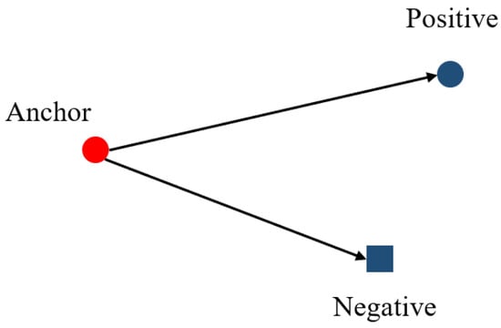 Triplets are composed of three samples, including the anchor sample , the positive sample , and the negative sample . Among them, the anchor sample and the positive sample belong to the same category, while the anchor sample and the negative sample belong to different categories. The optimization goal of triplet loss is to reduce the distance between the anchor sample and the positive sample while increasing the distance between the anchor sample and the negative sample and can be represented as Equation (1).