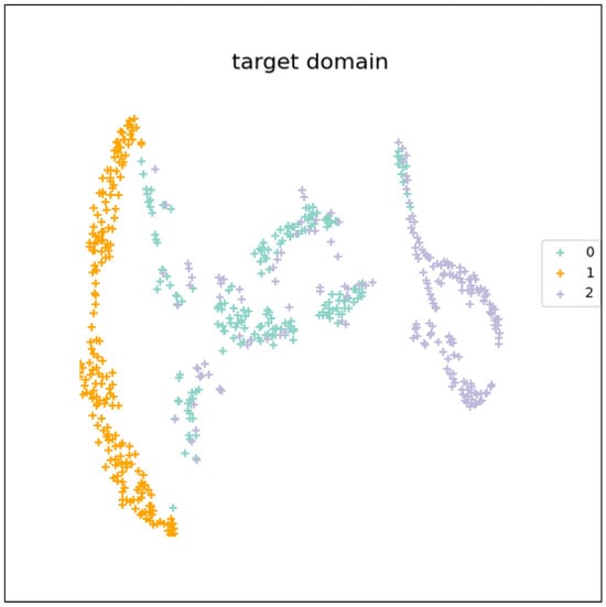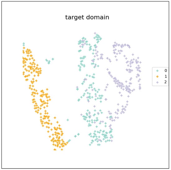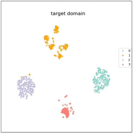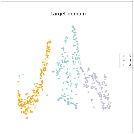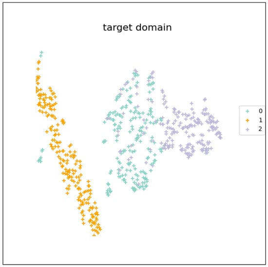 From Table 6 and Figure 13, Figure 14, Figure 15 and Figure 16, it can be observed that introducing triplet loss to some extent enables different class samples in the target domain to be more dispersed, while samples of the same class are more aggregated, thereby improving the prediction accuracy of the model.