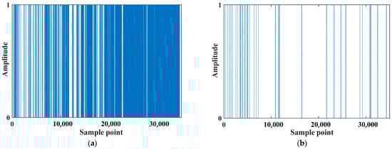 In order to visually demonstrate the effect of setting the delay factor on suppressing nuisance alarms, a comparison is made between the alarm signal data before and after setting the delay factor. The alarm signal values are recorded as 1 when an alarm occurs, and 0 otherwise. The results are shown in Figure 14.