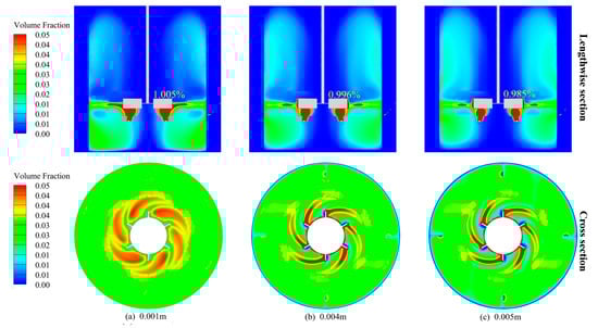 Gas holdup distribution inside the stirred tank at different bubble diameters.