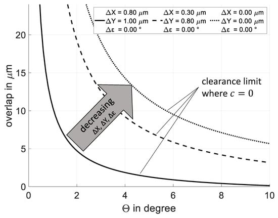 Analogous to Figure 7, the accuracy and the substrate geometry affect the maximum possible overlap . The maximum possible overlap for a given accuracy and geometry can be calculated by inserting in