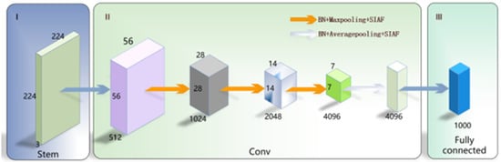 - The arrows indicate data flow and the interconnections between layers. Additionally, the diagram delineates the integration of different pooling strategies (Maxpooling and Averagepooling) with batch normalization (BN) and specific activation functions (SIAF), depicting their respective impact within the architecture.The architecture includes the following elements: