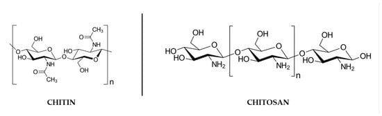 Mycelium-based materials are presented as emerging and sustainable flexible materials based on fungal mycelium. Mycelium is a characteristic structure, typical of fungi, which grows in a dense network of ramified hyphae. These hyphae (which are filaments originating from fungi spores) are composed mainly of chitin, a long polymer chain of N-acetylglucosamine and chitosan, which is deacetylated chitin (Figure 1) [6]. Nevertheless, other structures are present on the mycelium cell wall, such as proteins (e.g., mannoproteins, hydrophobins) and glucans [7].