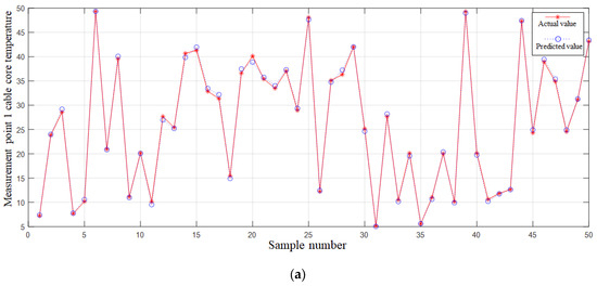 According to the results in Figure 9 and Table 2, it can be seen that the training effect of the radial inversion models 1 and the radial inversion models 2 is good, with errors of 0.23 and 0.43, respectively, providing an accurate inversion prediction of cable core temperature for subsequent axial inversion models; the error of the axial inversion model is 4.79, and the inversion prediction accuracy is relatively good.