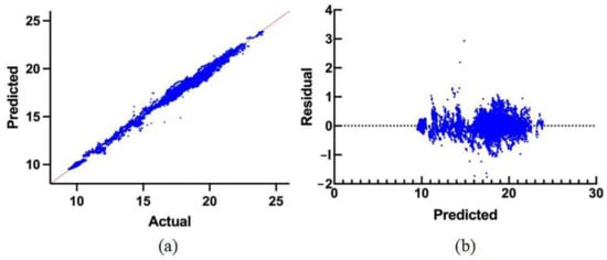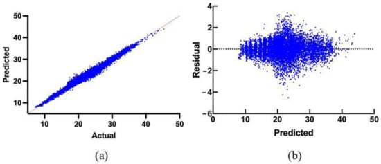 As shown in Figure 5, the comparison between the model prediction results and the actual values reveals that the model prediction values are relatively close to the actual values, except for a few points. Meanwhile, the residual diagram reveals no evident morphological result between the model prediction results and the residual values, indicating that the model completes the prediction well.