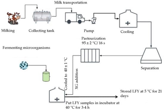 Schematic representation of the manufacturing steps of low-fat yogurt (LFY) [].