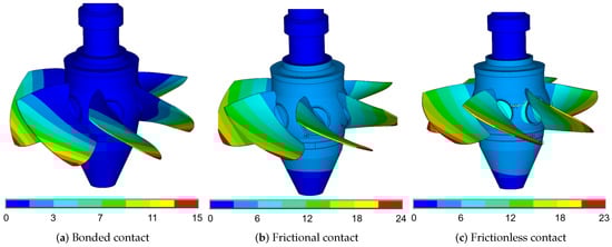 Displacement distribution of the runner under three contact modes.
