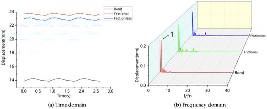 Time and frequency domain analysis of the maximum displacement point of the runner under three contact modes.