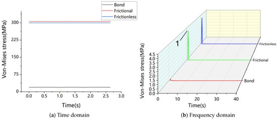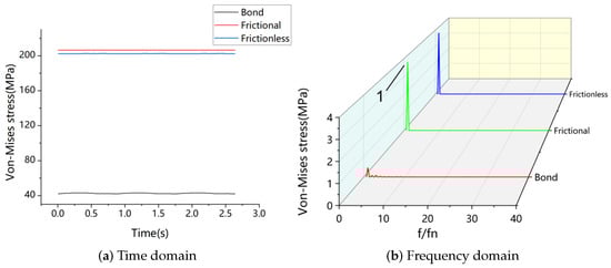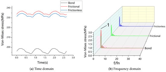 Time and frequency domain of the maximum stress point of the blade lever under frictional contact.