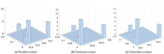 Table 6, Table 7 and Table 8 show the total damage to the blade lever within one cycle under three contact conditions. According to Miner’s theory, the entire life zone of the blade lever under fixed contact has 2.01 × cycles. The entire life zone of the blade lever under frictional contact has 6.49 × 1018 cycles. The entire life zone of the blade under frictionless contact has 7.24 × cycles. The life of fixed contact is 3.097 × times that of frictional contact and 2.776 × times that of frictional contact. There is a significant difference in the fatigue life prediction results of blade levers under three types of contact using Miner’s cumulative damage theory. The life results of frictional contact and frictionless contact are similar, and both are much smaller than the life calculated by fixed contact.