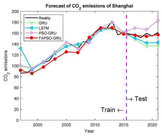 To further evaluate the prediction performance of FAPSO-GRU, real data from Shanghai, Beijing, Guangdong, Hubei, and Hunan are used for validation tests. For Shanghai, Beijing, Guangdong, Hubei, and Hunan, data from 1997 to 2016 are used for training, and data from 2017 to 2021 are used for testing.
