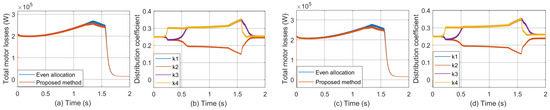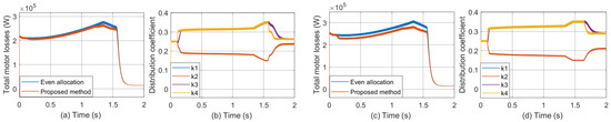Total motor losses and distribution coefficients under average allocation and the proposed method.