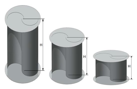 The aspect ratio, which is the ratio of the rotor’s height to its width, is a critical design parameter in wind turbines, as shown in Figure 6. It significantly influences a turbine’s performance characteristics, such as its angular velocity and torque. As the aspect ratio increases, the angular velocity, measured in revolutions per minute (RPM), tends to increase, while the torque generated by the rotor decreases. This relationship is crucial for optimizing the turbine’s efficiency and operational effectiveness in various wind conditions [39]. Research indicates that an increase in the aspect ratio of wind turbines generally leads to an improvement in the power coefficient. This enhancement is likely due to a reduction in the moment of the inertia force. A high aspect ratio can result in a turbine’s blades having a greater height relative to their width, which can affect both the angular velocity and the torque produced [40,41]. Many studies have focused on determining the optimal aspect ratio value, aiming to balance the turbine’s performance in terms of power output and structural integrity. While a higher aspect ratio can slightly increase efficiency, it is essential to consider other design factors and operational conditions to ensure that the turbine operates effectively. The quest for the ideal aspect ratio is part of the broader effort to optimize wind turbine designs for maximum energy conversion and sustainable operation [42]. Thus, adjusting the aspect ratio is a recognized strategy for optimizing the efficiency of wind turbines. In the studies by Kamoji, Kedare, and Prabhu (2009) [43], a rotor with an aspect ratio of 0.7 yielded the highest power coefficient, suggesting that this value may be close to optimal for certain designs. Similarly, research by Modi, Roth, and Fernando (1984) [44] indicated that an aspect ratio of 0.77 is particularly effective for Savonius rotors. However, determining the absolute maximum value for the aspect ratio is complex and remains undefined. This is because it involves a delicate balance between aerodynamic performance and mechanical design considerations, such as fatigue forces and stress, which are influenced by the rotor’s height. Further analysis in these areas is essential to establish a more precise upper limit for the aspect ratio that can ensure both high performance and structural integrity of turbines.
