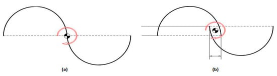 The aerodynamic study of VAWTs presents unique challenges due to their omnidirectional wind accommodation. The vertical orientation of the turbine’s axis stands in contrast to the wind’s path, as shown in Figure 1. A significant challenge is managing the high angle of attack and the turbulence created by the blade’s wake on the upwind side. This issue is more pronounced in the Savonius rotor, a drag-based design. A deeper understanding of the Savonius rotor’s aerodynamics is crucial for enhancing its design and operational efficiency. As depicted in Figure 1a, the fluid dynamics involve the fluid pushing against the advancing blade, propelling it forward, which in turn rotates the blade and repositions the returning blade to where the advancing blade started. The rotation of Savonius-type rotors is primarily driven by the differential drag force between the concave (advancing) and convex (returning) sides of the blades, with lift forces playing a role in the operation of Darrieus rotors [17].