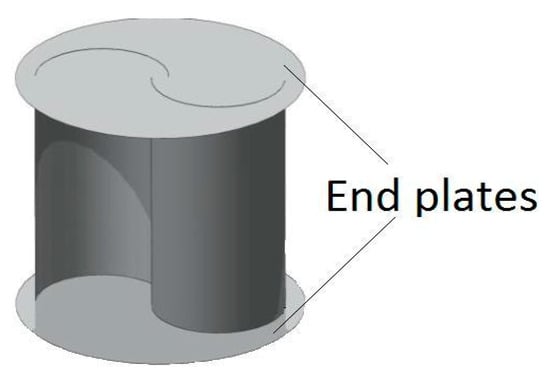 Endplates, simple devices that can be installed on both the top and bottom of a Savonius rotor, play a crucial role in enhancing performance, as shown in Figure 14. These accessories improve the power coefficient and allow the rotor to operate efficiently at high tip speed ratios (TSRs). Additionally, endplates prevent air leakage from the concave side to the external airflow, maintaining a favorable pressure difference across the height of the turbine rotors [19]. Studies consistently recommend that the diameter of endplates for conventional Savonius rotors should be approximately 10% larger than the turbine diameter [69,70,71,72]. In an experimental investigation by Jeon et al. (2015) [73], the effect of endplates on helical Savonius rotors (with twist angles of 180°) was explored. Four different helical rotor configurations were tested, each with varying endplate area ratios. The endplate area ratio (ER) is defined as the ratio of the circular endplate area to the cross-sectional area of the wind turbine. Interestingly, the study revealed that the optimum ER value was 1.0, contributing significantly to performance enhancement.