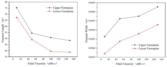 Relationship between Fracturing fluid viscosity and fracture length and width under separate layers.