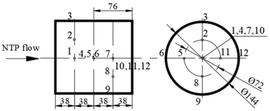 Schematic distribution of thermocouple positions inside the DPF. Reproduced with permission from Xulong Chen, Yunxi Shi et al., Carbon Letters; published by MDPI, 2023 [].