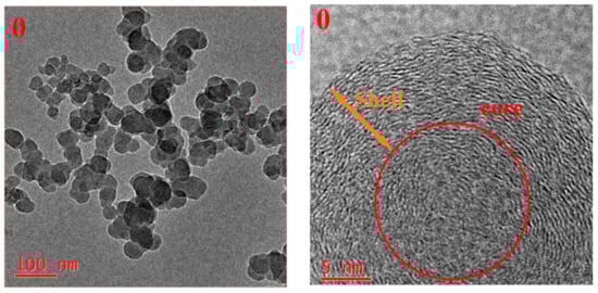 Aggregation pattern (left) and core-shell structure (right) of primary carbon particles of carbon black samples.
