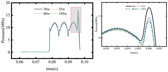 Comparison of simulation results of piston cavity pressure with different numbers of meshes.