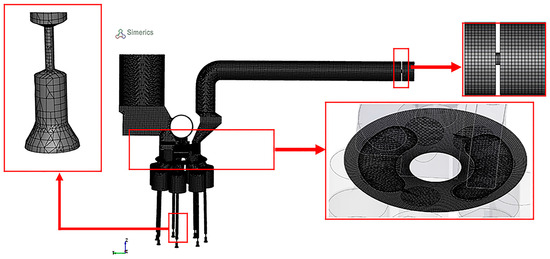 Upon comparative assessment of the pressures within the piston cavities, the output pressures, and the output flow rates among the various models, Model C was determined to be the most suitable and was therefore selected to proceed with in the subsequent stages of the work. The methodology for mesh division is detailed, and the specifics can be observed in Figure 5.