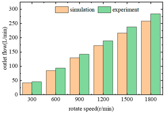 Simulation results of output flow rate under different rotating speeds at 10 MPa.