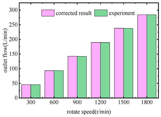 After revision, simulation results of output flow rate under different rotating speeds at 20 MPa.