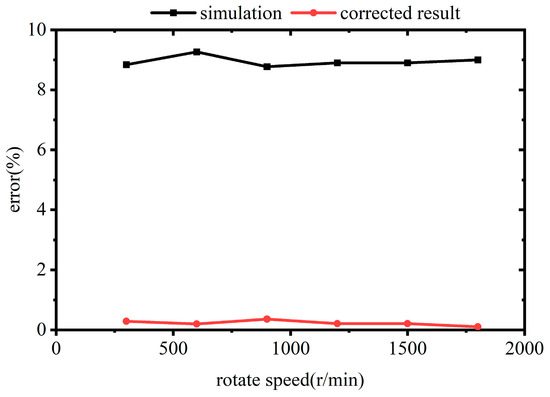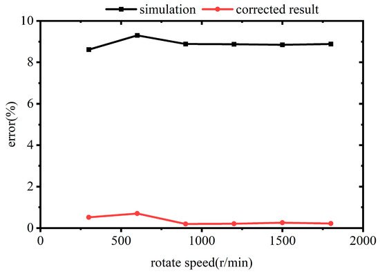 Comparison of error rate between simulation results and correction results at different speeds under load pressure of 20 MPa.