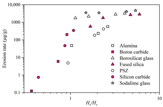 - Shipway, P.H.; Hutchings, I.M. The role of particle properties in the erosion of brittle materials. Wear 1996, 193, 105–113. [Google Scholar] [CrossRef]