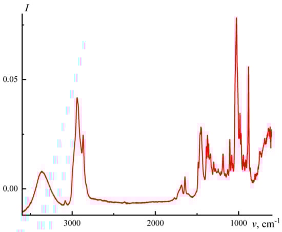 It is known that the chemical composition of betulin can be described using IR spectroscopy [21,22,23,24]. The IR spectrum of betulin is displayed in Figure 2.