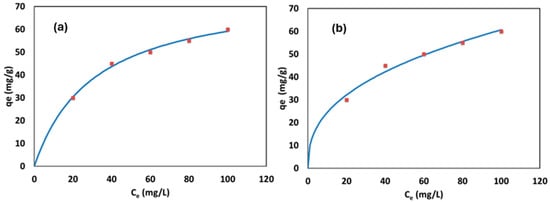 Adsorption isotherms were studied using the Langmuir and Freundlich models. The Langmuir isotherm is given by Equation (4):