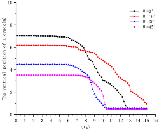 Evolutionary curve of crack propagation along the vertical direction under different angles.