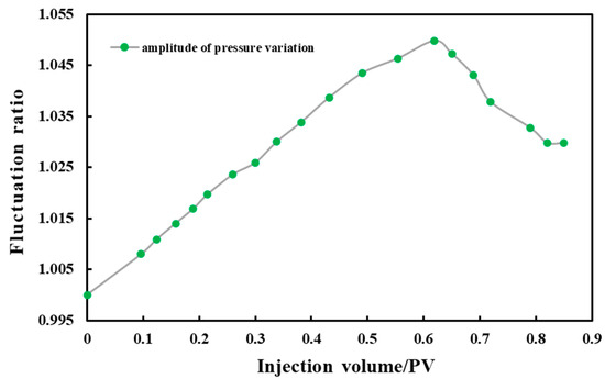 Relationship between injection volume and pressure fluctuation amplitude under near-miscible condition.