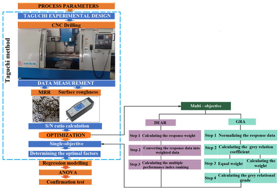 The multi-performance characteristics of drilling processes Ra and MRR were transformed into a single objective function using GRA and DEAR techniques.
