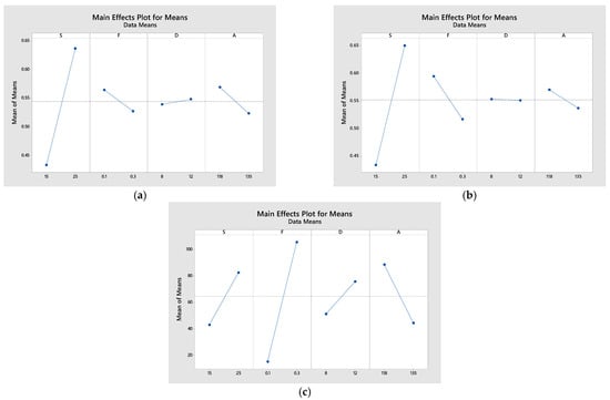 3/s, which corresponded to Taguchi’s single-optimization levels S2F1D1A2 and S2F2D2A1, respectively.